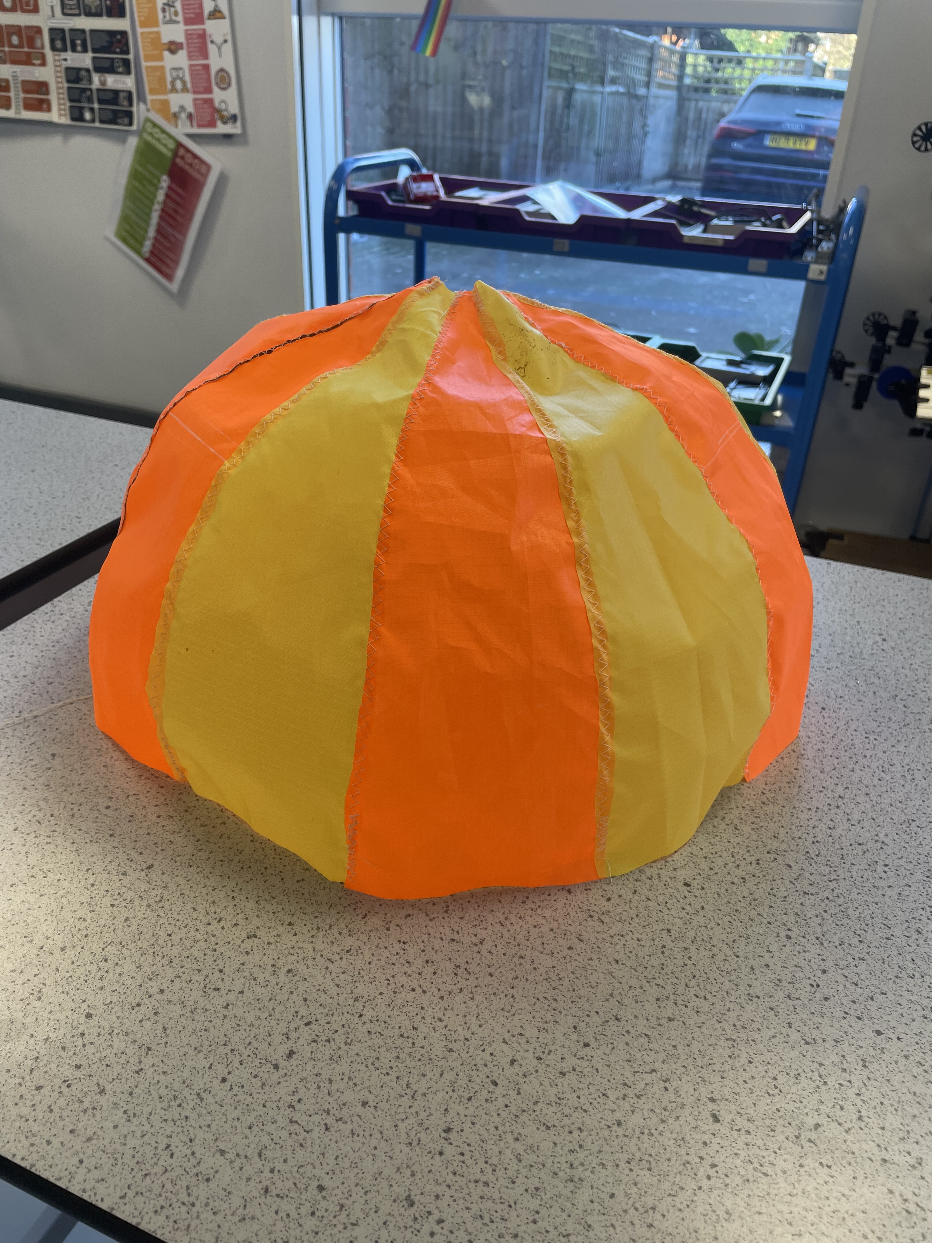 DROP: DROP stands for Descent Research on Parachutes. Last year we really enjoyed making the parachute but there were no marks in the competition for this as it was outside our mission. So this year we are going to incorporate the parachute into the mission and investigate parachute design and can stability as it falls. The pictures are of last year’s parachute.